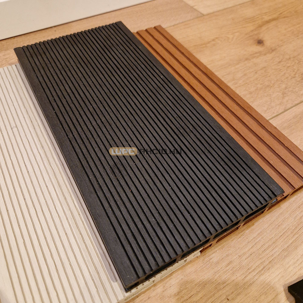 A Standard WPC burkolat mind a két oldalával felfelé rakható, egyik oldala sűrűn, a másik oldala ritkán bordázott. A Standard WPC burkolat kiválóan alkalmas teraszok, járdák, parti sétányok, stégek és medence partok burkolására. A Standard WPC burkolat 8 féle színben érhető el.