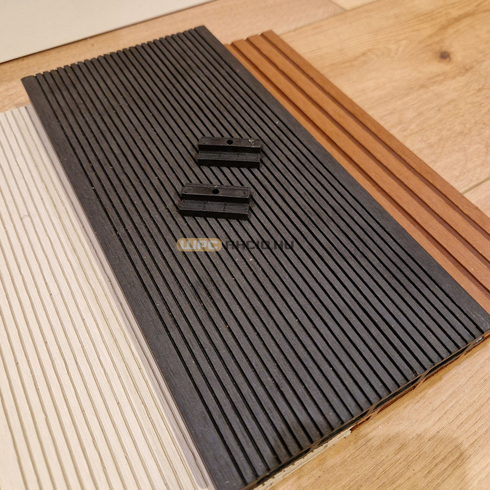 1 nm2 Standard WPC teraszburkolat antracit színben, műanyag klipszes kivitelben. A Standard WPC burkolat rendszerára tartalmazza az 1 nm2 burkoláshoz szükséges WPC deszkákat, a párnafát, a műanyag rögzítő klipszeket, az indító/ záró klipszet és az ezek rögzítéséhez szükséges csavarokat.