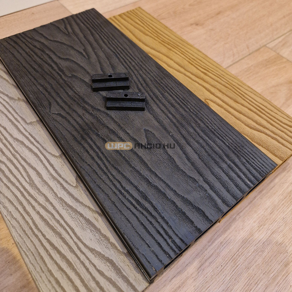 1 nm2 Prémium WPC teraszburkolat antracit színben, műanyag klipszes kivitelben. A Prémim WPC burkolat rendszer ára tartalmazza az 1 nm2 burkoláshoz szükséges WPC deszkákat, a párnafát, a műanyag rögzítő klipszeket, az indító/ záró klipszet és az ezek rögzítéséhez szükséges csavarokat.